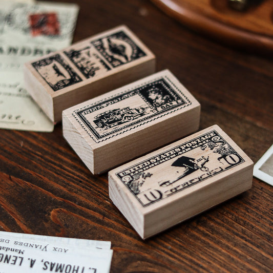Sellos de caucho rojo montados en madera, compatibles con tintas permanentes, híbridas, gel, etc. Temática postal, perfecta para composiciones individuales o por capas en combinación con las demás colecciones de sellos.