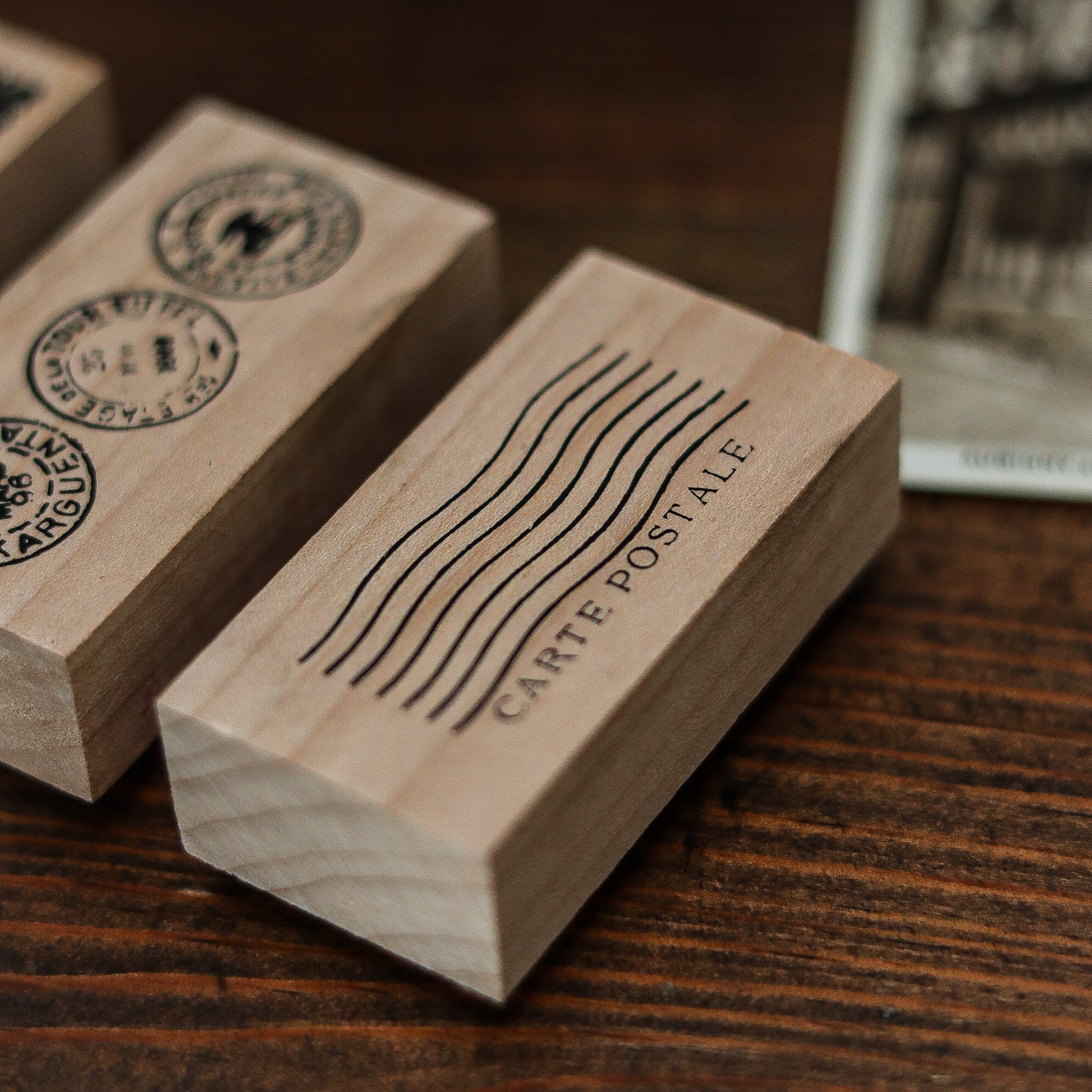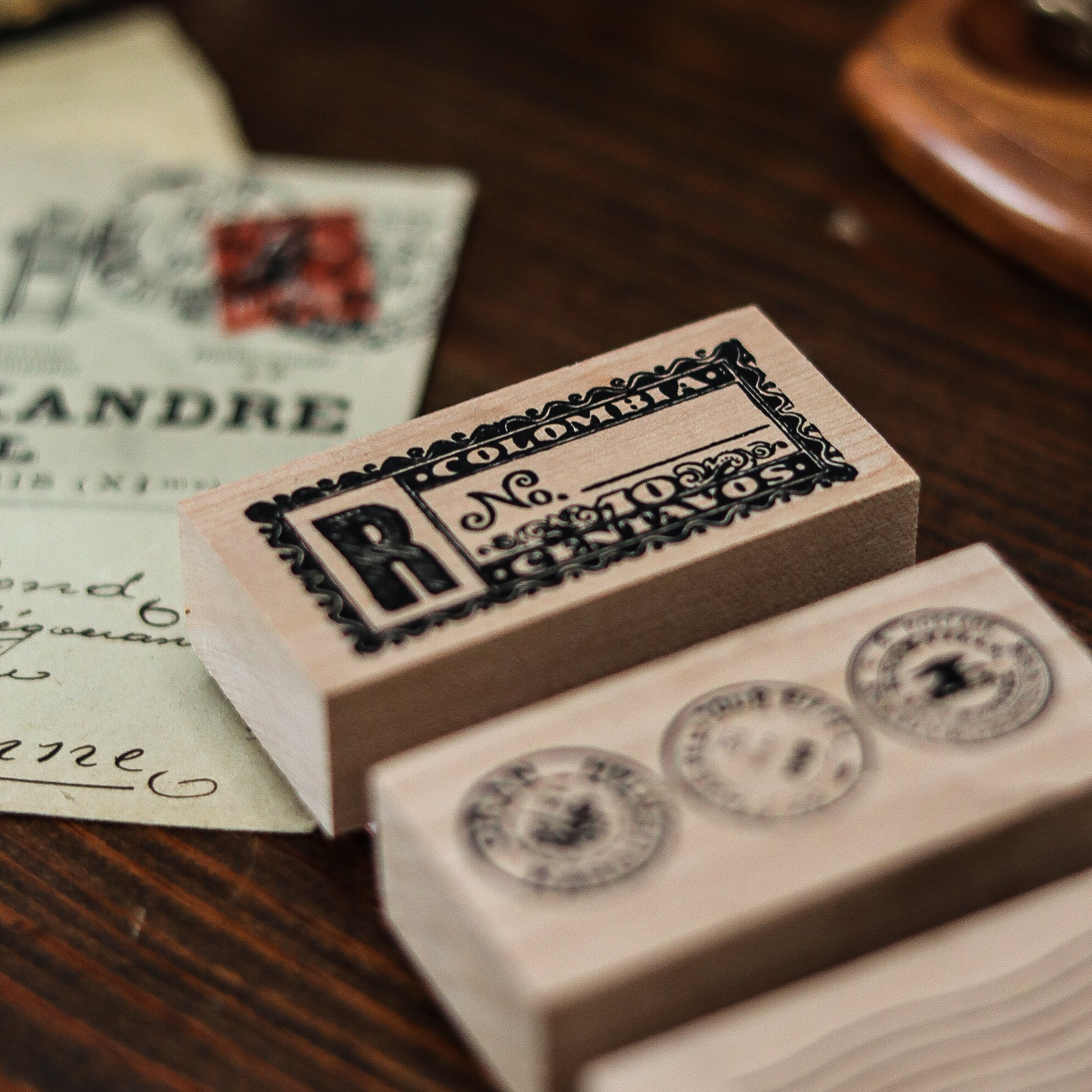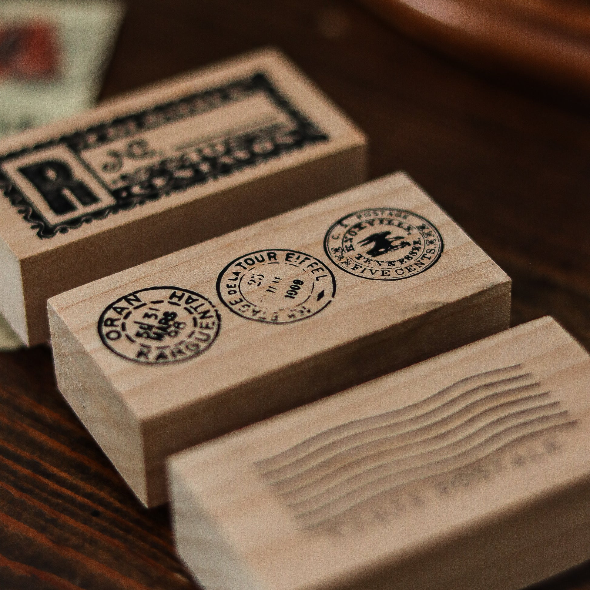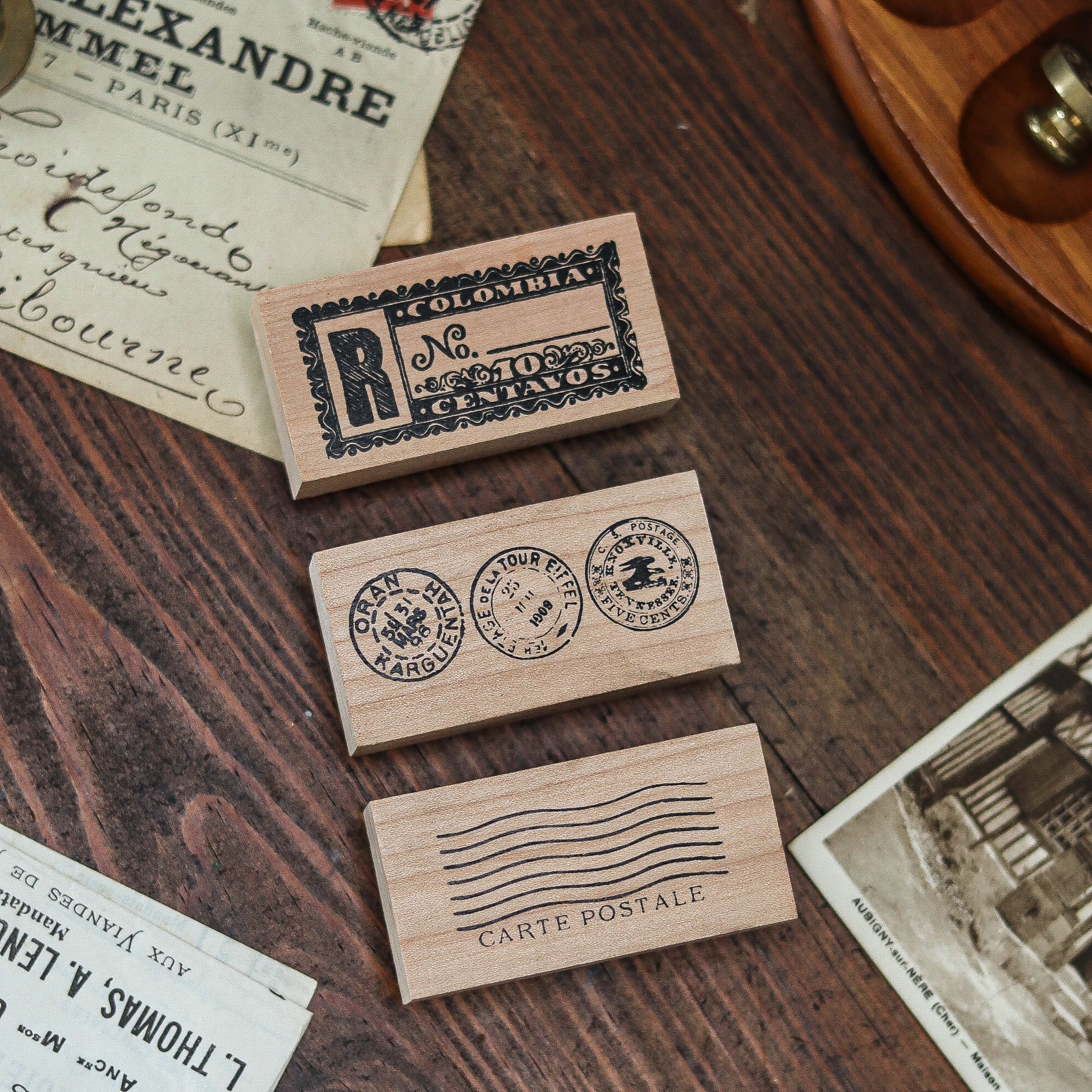 Sellos de caucho rojo montados en madera, compatibles con tintas permanentes, híbridas, gel, etc. Temática SELLOS POSTALES para crear proyectos profesionales; este set te permite crear composiciones individuales o en conjunto, ya sea para proyectos de journaling o scrapbooking.