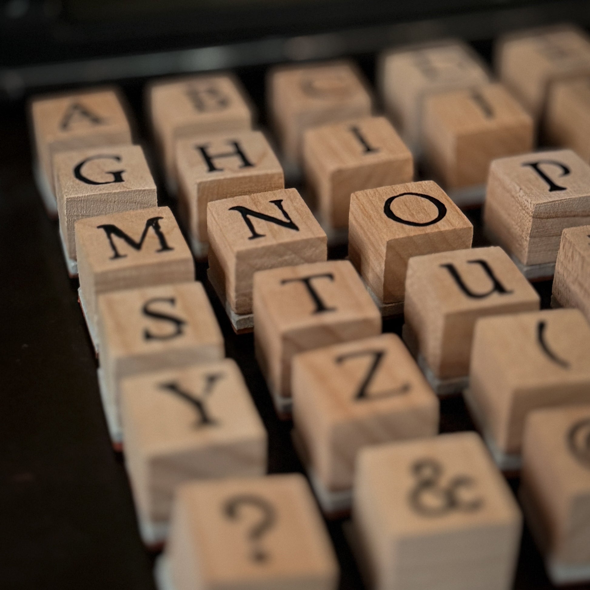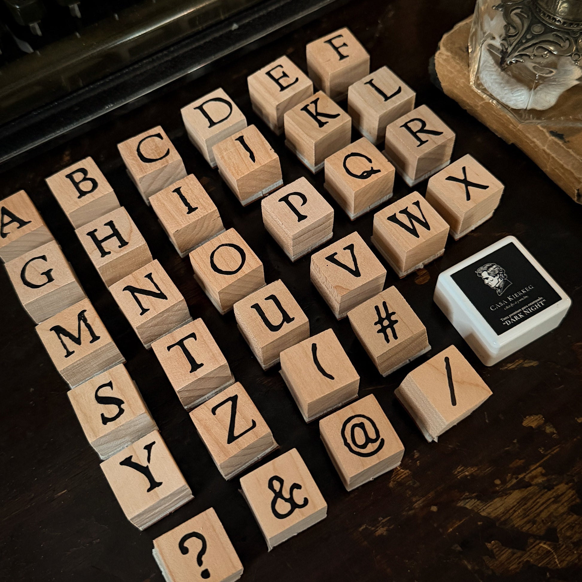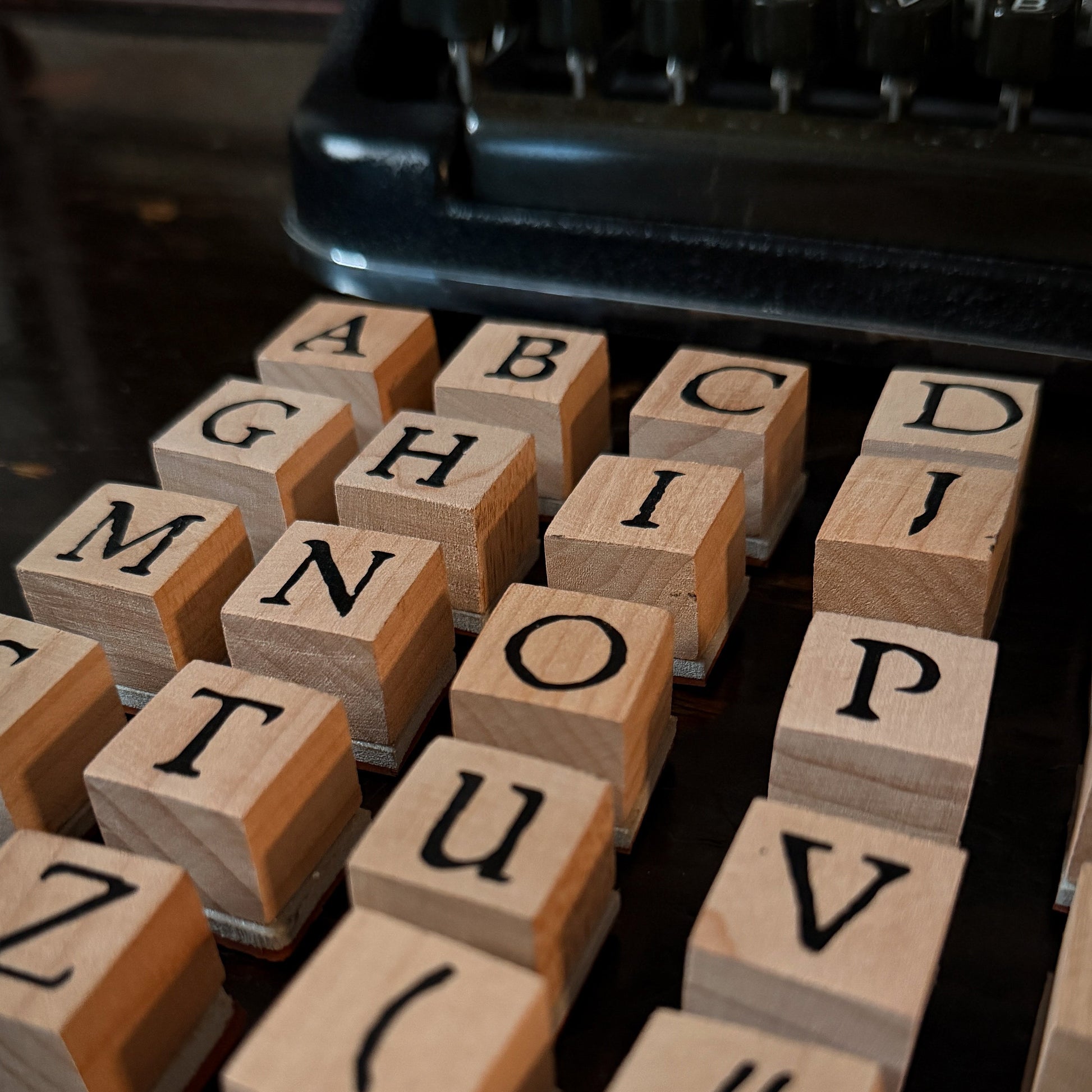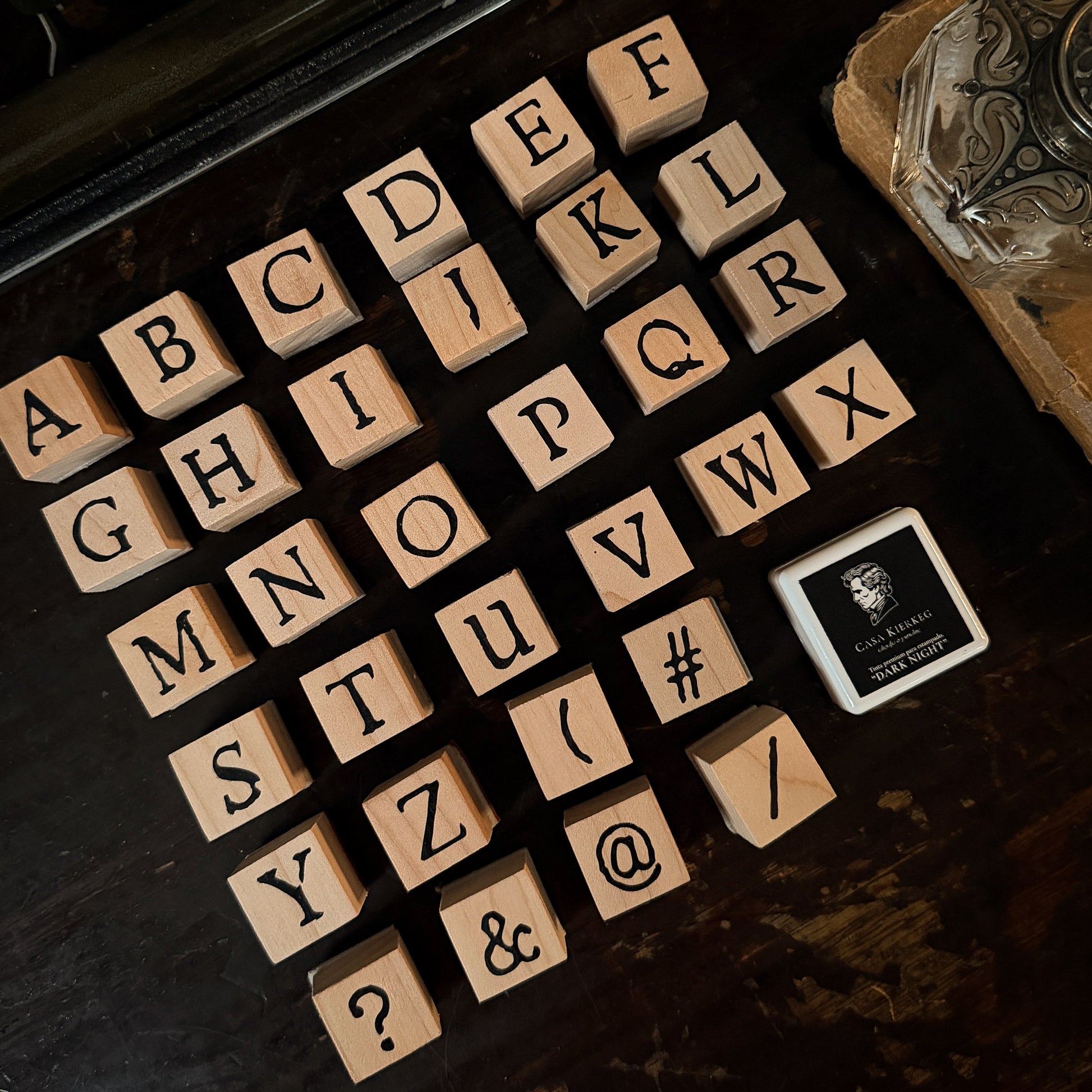 Sellos de caucho rojo montados en madera, compatibles con tintas permanentes, híbridas, gel, etc. Temática “ABECEDARIO”; este set te permite crear composiciones individuales o en conjunto, ya sea para proyectos de journaling o scrapbooking.